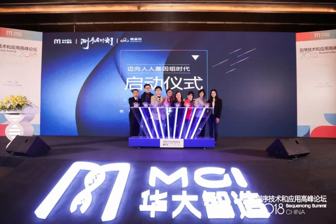 中国上海,2018年12月25日,华大智造与国内领先的基因组数据平台微基因WeGene,在2018测序技术和应用高峰论坛上宣布启动测序者计划之“迈向人人基因组时代”,将携手致力于——让每个中国人都拥有一份全基因组数据。华大智造首席运营官蒋慧博士和微基因首席执行官陈钢博士等作为代表参与启动。