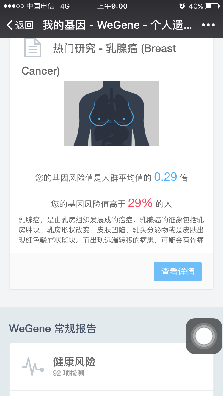 我们的乳腺癌主要是多态性位点的检测,1.86倍的风险提升相对来说并不是特别高,注意生活习惯+定期体检就好了~