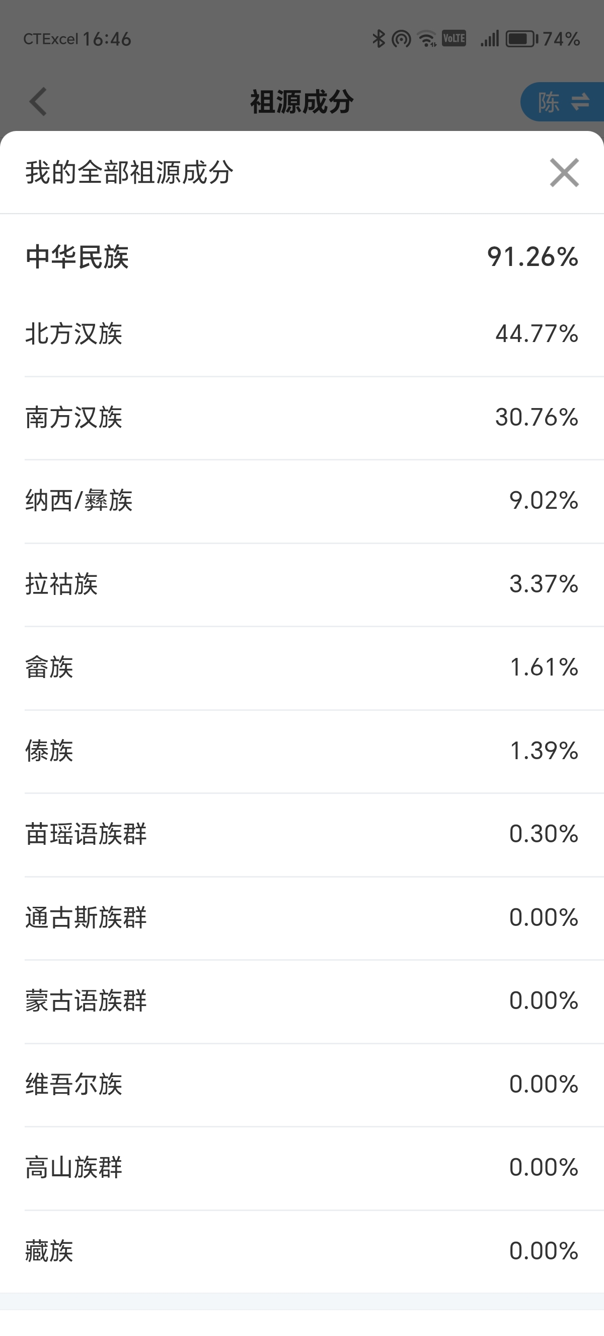 我也是湿耳垢还有轻度狐臭,关键是我不是中国狐臭率最高的两广和新疆人,我是江浙一带的人。照你这么说微基因祖源分析也不要加什么欧洲,中亚,中东,非洲这些成分标杆了,反正大多数中国人基因距离这些地区都是相差千里之外的,但也不排除某些人是100%中国人也有这些成分,可能因为他们是西北少数民族。