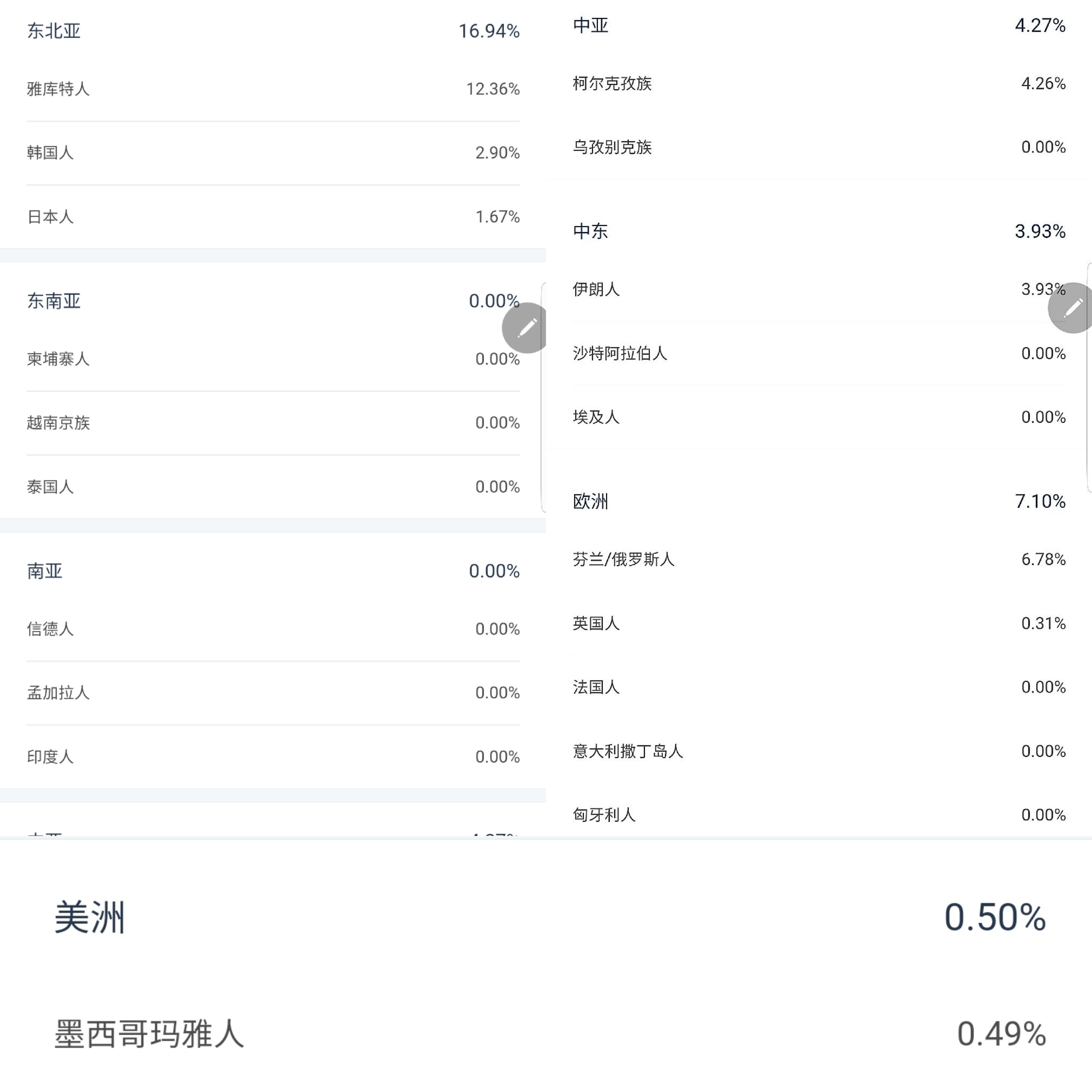 我知道的是外祖父一半汉人,祖母一半斯拉夫人(俄罗斯族) ,外祖母说过祖上也不是纯蒙古人,她的太祖父找的某个老婆是茨康女人,貌似是吉普赛人,也是从俄罗斯境内来的。
