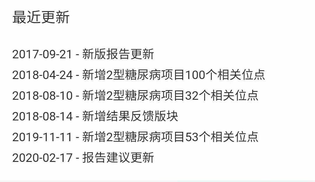 举个例子,「健康风险」板块的「2 型糖尿病」项目,经过 WeGene 历年来不断更新,目前用户报告解读的位点高达 213 个。